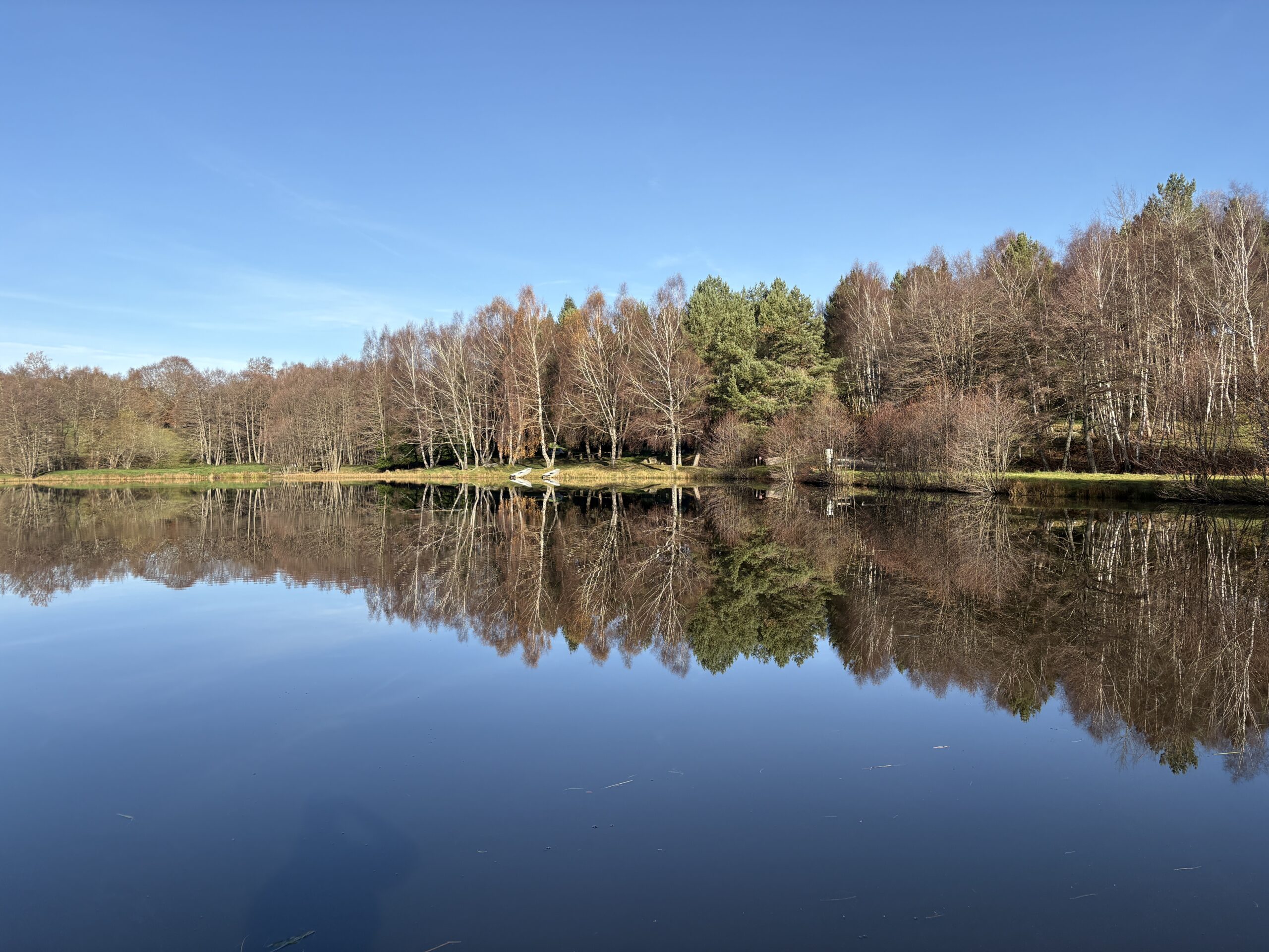 30 novembre, 7 h 50. Nous quittons notre logement de Nébouzat, petit village collé aux pieds de la chaîne des Puys. Le thermomètre affiche une température à un chiffre et une légère brume enveloppe le paysage. Après quelques virages serrés sur des routes sinueuses, nous nous engageons sur un chemin en terre battue. Quelques centaines de mètres plus loin, le réservoir apparaît enfin, enchâssé entre des collines tapissées de conifères.