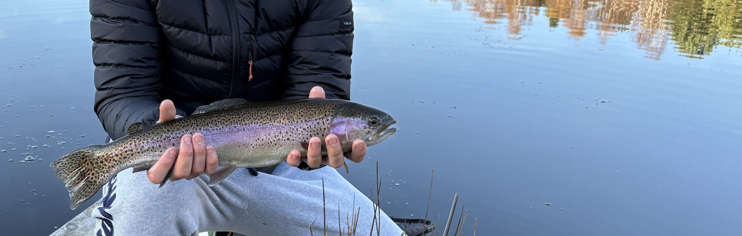 Alors que nous avons déjà parcouru la moitié du réservoir, un événement brutal vient rompre la monotonie. Ma nymphe, qui évoluait à environ 80 centimètres de profondeur, se fait soudainement happer. Le fil se tend instantanément, et avant même que je ne comprenne ce qui se passe, ma pointe casse immédiatement sous la violence du combat. Le tout ne dure qu’une fraction de seconde… ces truites sont d’une vivacité exceptionnelle et punissent impitoyablement le moindre instant d’inattention.